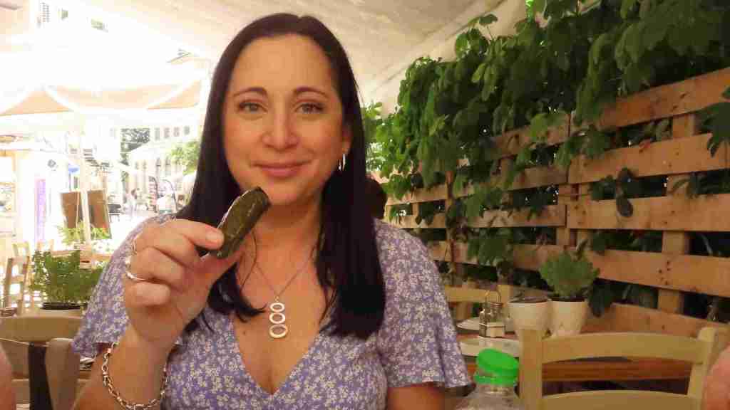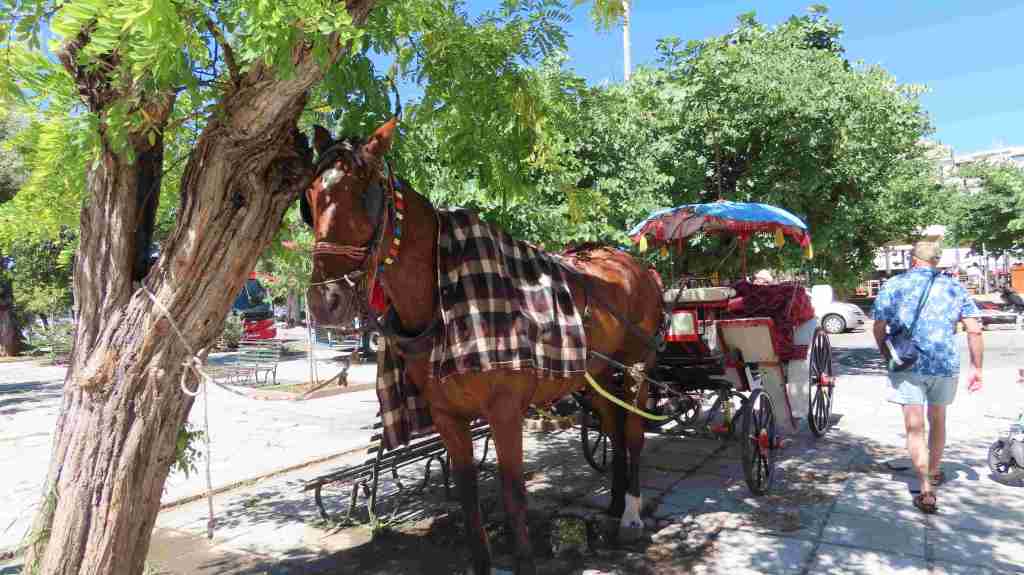 The village was not far and we were told to return to the parking area at 11:10 where the bus would be waiting. We left Earl to rest on a bench in a cool, shady spot. Sasha went off on his own and Lollz and I went to explore the lovely Greek shops. We made a few small purchases and then returned to find Sasha and Earl enjoying a lovely cool drink.