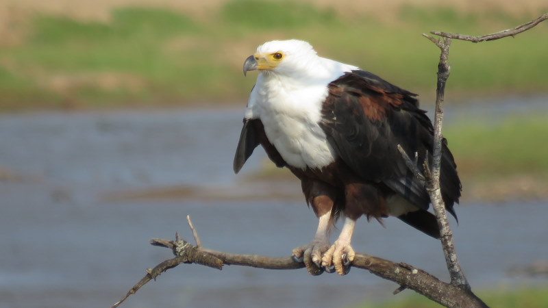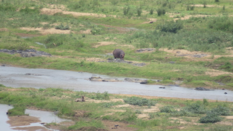 I am the first to spot an animal – A hyaena but it dashes away and the photos is blurred. We see a fellow camper, Dave, who is travelling alone. We pull up next to him and he tells us he is waiting for the lions that we heard to appear. We don’t have the same patience and move on and then stop to look down on the river where there is quite a bit of bird activity. This is fun – there are lots of birds to spot and the Earl is the first to get Burchell’s coucal, grey heron, little swift and fish eagle. He also sees the hippo first. I get grey hornbill, great white egret and green-backed heron. He is beating me and I don’t like it!