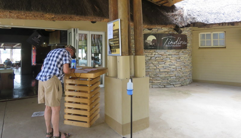 When we stop at Mopani’s Fish Eagle Terrace for breakfast, the Earl is still ahead but I’m gaining fast. He leaves his binoculars in the car but I take mine and my camera too.