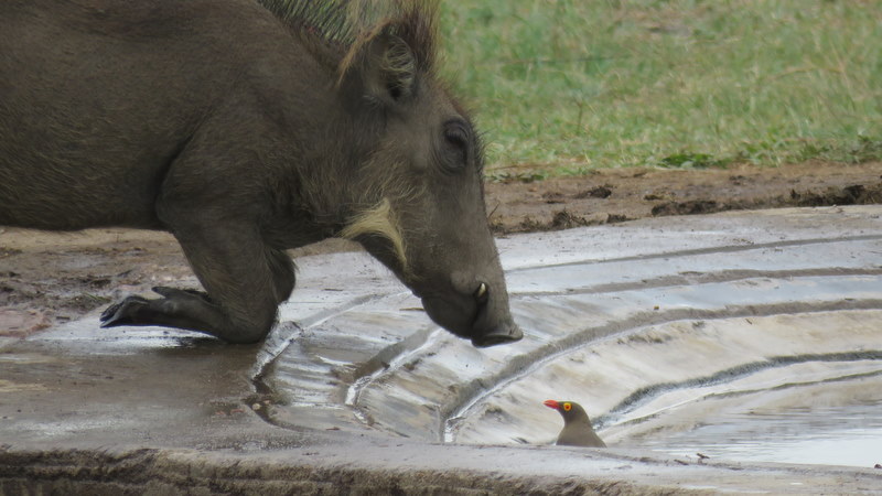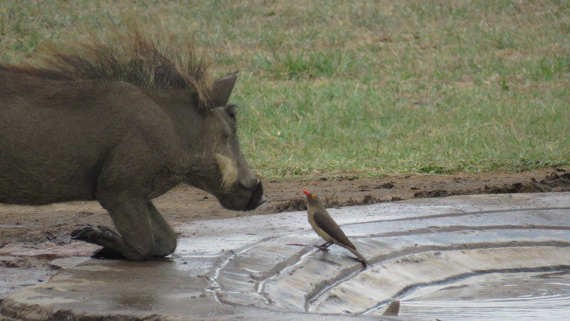 The elephants were not happy that the buffalo wanted to share their watering hole. They trumpeted and complained and even tried to chase the buffalo away. Water buck and impala kept their distance at the far end of the dam. We also saw an openbill, three grey heron and some Egyptian geese.