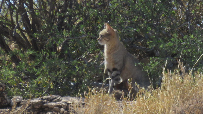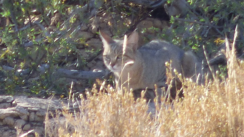 We find the wild cat at the same spot as yesterday and point her out to others who stop to ask what we’re staring at. We manage to get good shots of her and the kitten