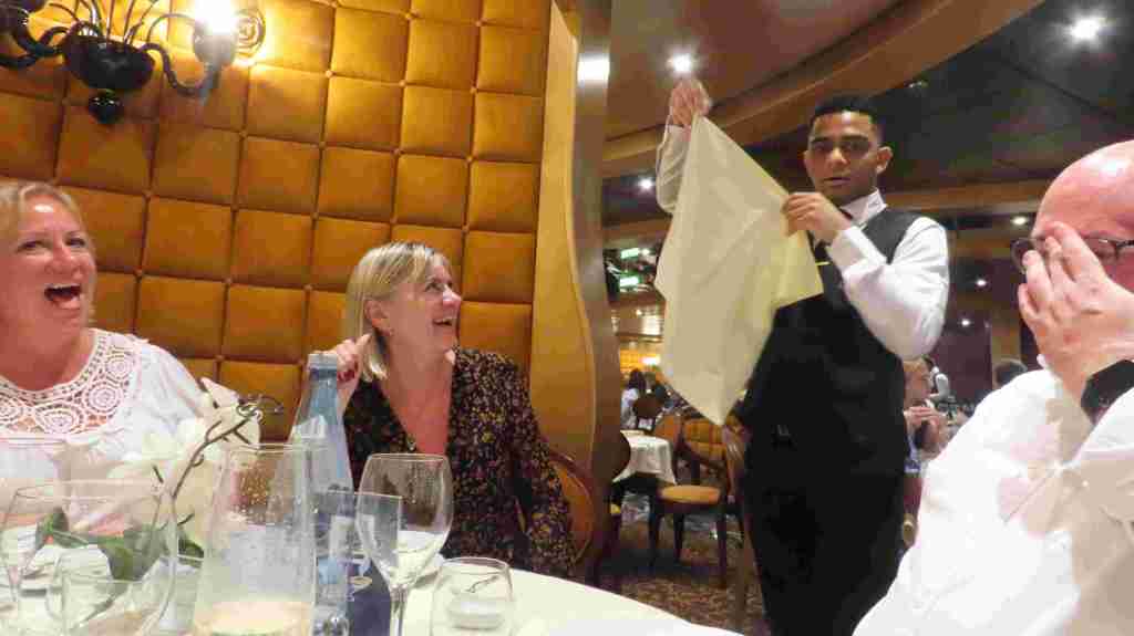 This waiter entertained us with a magic trickThen made a crown for The Earl